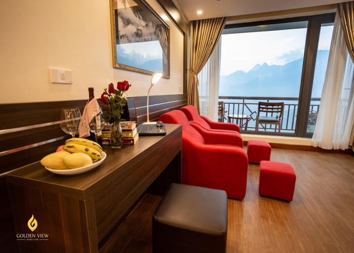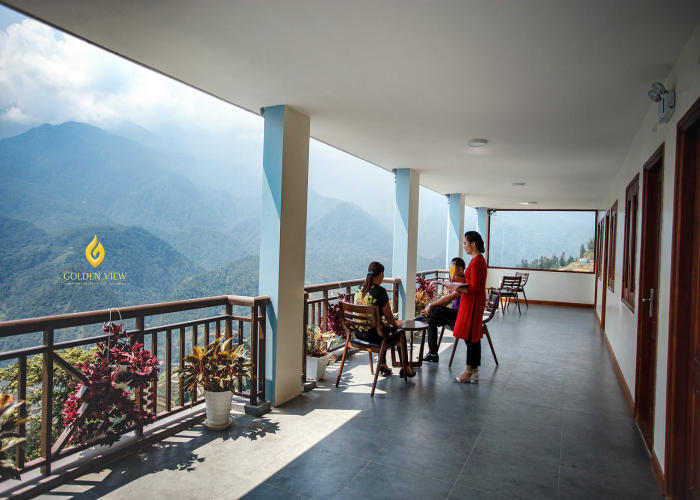 Golden View Hotel sở hữu những đường nét kiến trúc mang đậm phong cách truyền thống của đồng bào miền núi, vẽ nên một không gian giản dị, ấm cúng. Là điểm đến ưa thích của các du khách trong và ngoài nước, giúp bạn tận hưởng trọn vẹn kỳ nghỉ của mình bên người thân tại thị trấn mù sương Sapa.Tọa lạc tại tuyến phố Fansipan - một trong 2 con phố cổ lâu đời nhất của thị trấn Sapa trên đường tới bản làng Cát Cát, Golden View Hotel tự hào là một trong số ít khách sạn cổ điển tốt nhất với cảnh quan thiên nhiên hoang sơ, thơ mộng. Từ khách sạn, du khách dễ dàng di chuyển tới các địa điểm tham quan nổi tiếng của Sapa như nhà thờ đá, chợ tình, núi Hàm Rồng…