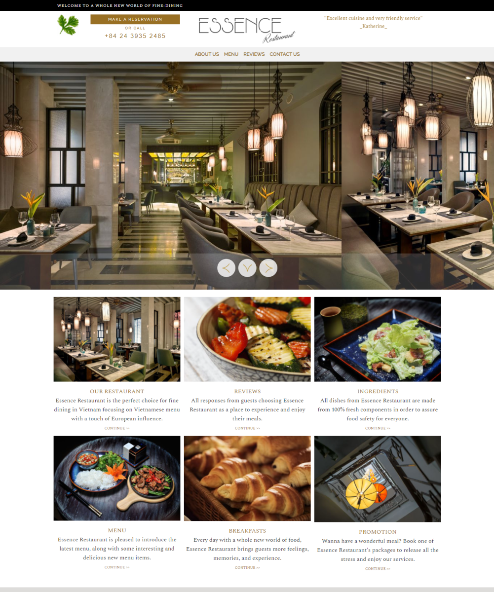 + Module giới thiệu: có đầy đủ các thông tin cần thiết về quy mô, kinh nghiệm, thành tích, đội ngũ nhân viên, các giải thưởng về ẩm thực hoặc hoạt động kinh doanh, dịch vụ có trong nhà hàng khách sạn,....
