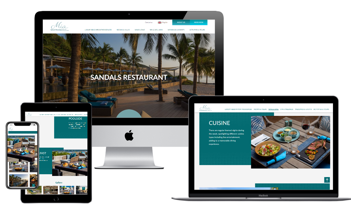 Dịch vụ thiết kế website nhà hàng resort chuẩn SEO ấn tượng mà Webhotel cung cấp luôn đảm bảo cho các đơn vị kinh doanh nhà hàng resort về thẩm mỹ, công nghệ hiện đại, độ bảo mật cao, tăng nhanh thứ hạng trên bảng xếp hạng tìm kiếm. Điều này giúp thu hút khách hàng đến với website, thôi thúc họ đến thưởng thức đồ ăn và trải nghiệm dịch vụ tại nhà hàng resort của bạn.