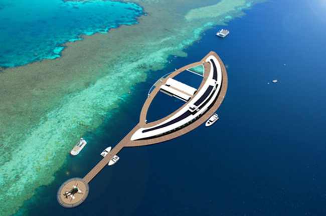 Khách sạn Reefword được đánh giá là khách sạn thân thiện với môi trường bằng thiết kế đặc biệt được xây dựng bên bờ san hô kỳ vĩ thuộc vùng biển Australia. Tiện nghi của khách sạn là điểm đáng chú ý nhất bởi tất cả các phòng ngủ đều được làm bằng kính, khách hàng có thể nhìn ngắm biển và nhìn rặng san hô mọi lúc kể cả khi ở trong phòng.