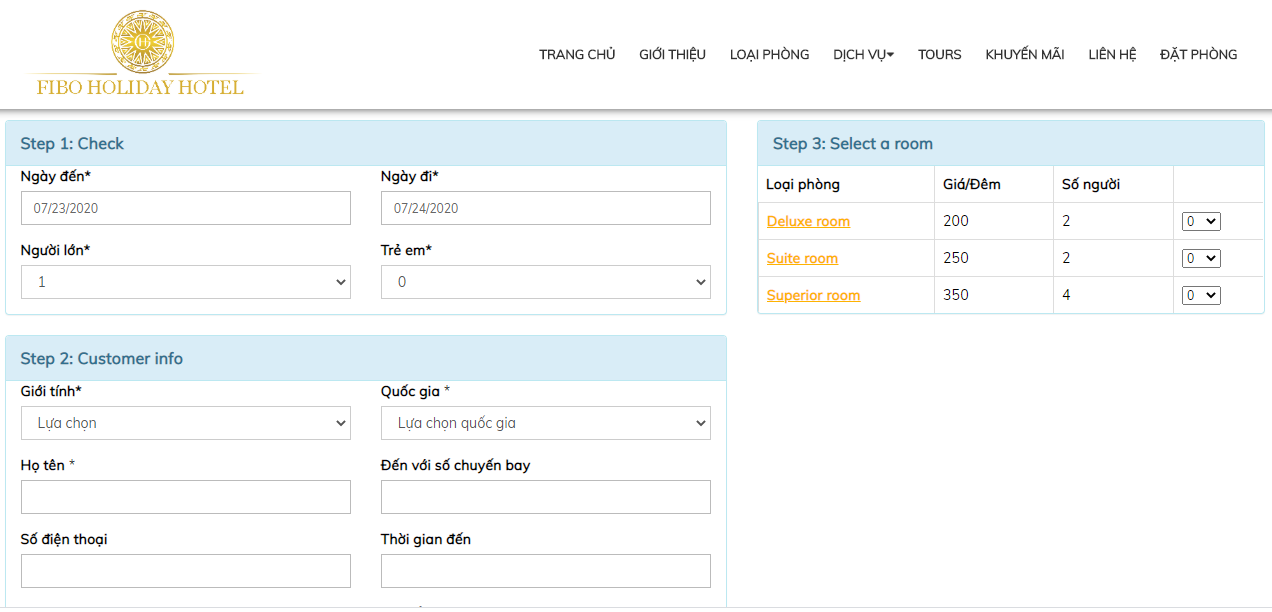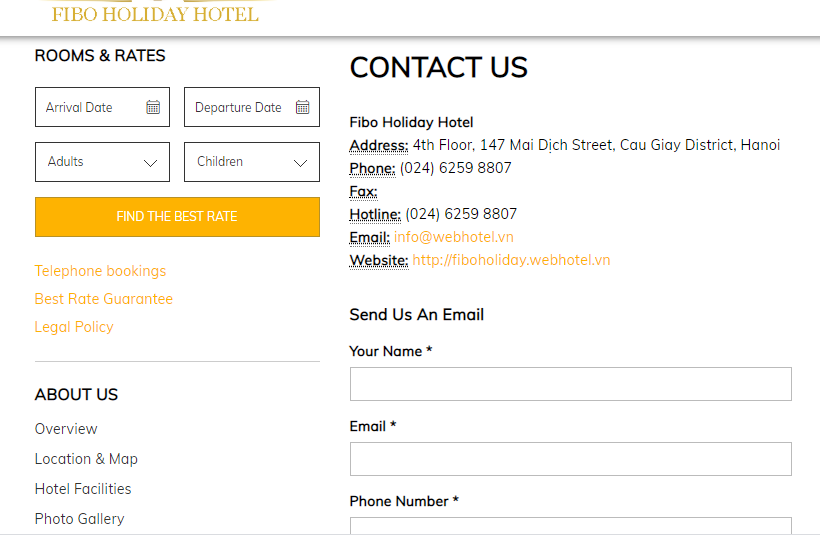 Thông thường nếu website không có Booking Engine thì đây sẽ là đích đến cuối cùng sau khi khách hàng xem phòng và muốn đặt phòng. Nó sẽ lấy các thông tin cần thiết như Tên, số điện thoại liên hệ, Email, quốc tịch và ngày check-in, check-out của khách. Khi có booking, khách sạn ngay lập tức sẽ nhận được Email thông báo chứa thông tin của khách hàng book phòng, đồng thời gửi Email thông báo khách hàng đã đặt phòng thành công.