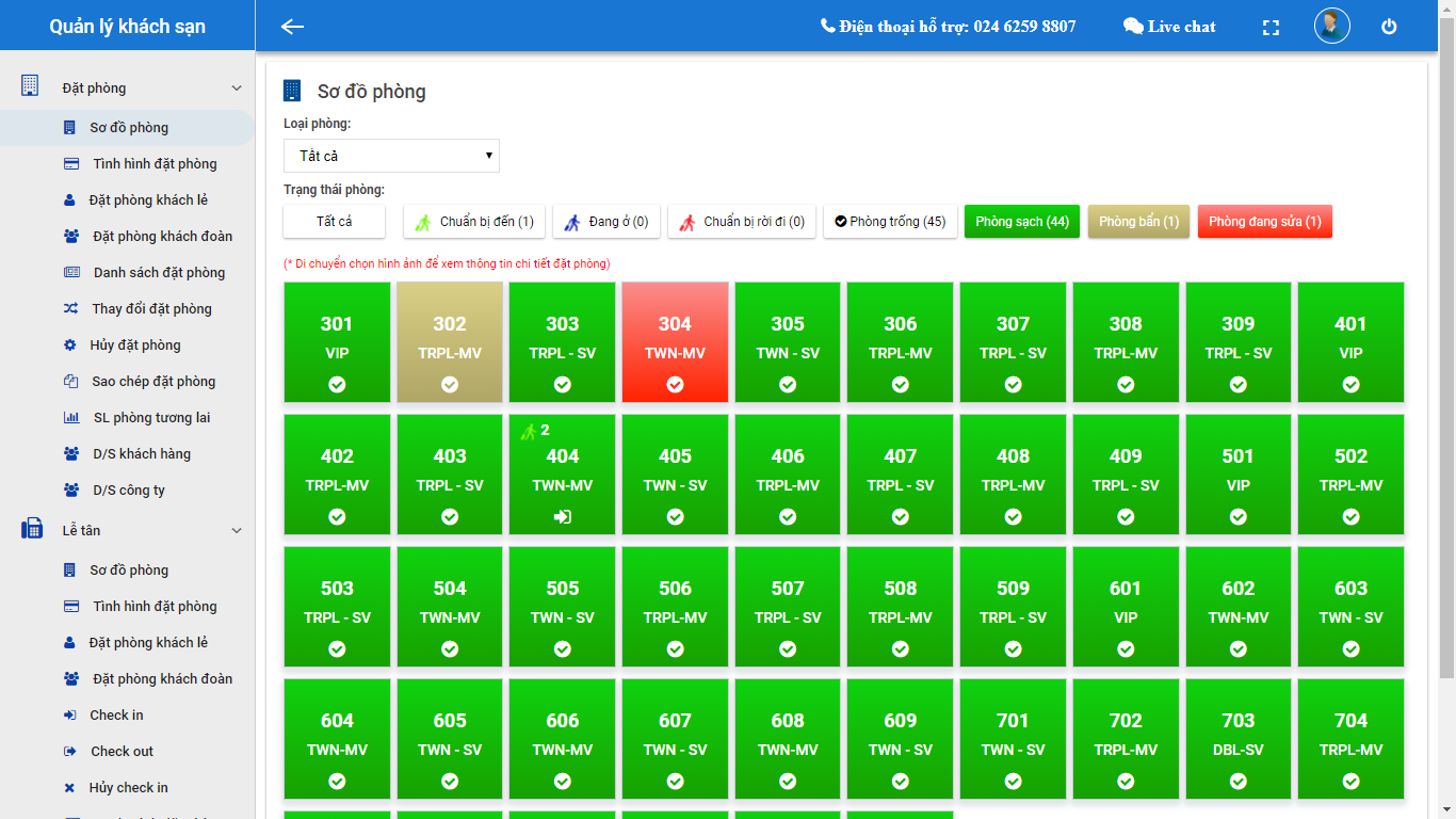 - Nhân viên các bộ phận cũng dễ dàng sử dụng tùy theo chức năng của bộ phận mình. Bộ phận lễ tân sẽ theo dõi được phần khách hàng đặt phòng, tình trạng phòng trống hay có khách, sơ đồ phòng khách sạn để từ đó dễ dàng nắm bắt và phối hợp nhịp nhàng với các bộ phận khác trong công việc.